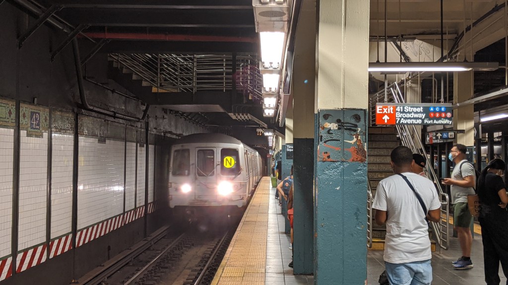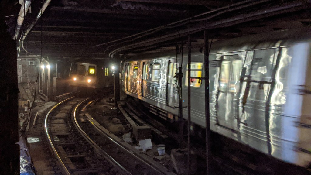 This affects one of the most important metrics in transit planning: dwell time. Dwell time is the amount of time a train spends in a station, and it can have a big impact on overall on-time performance. A few seconds delay at every station along a line can add up to minutes worth of lost time by the end. Subway trains should spend around 30 seconds stopped at each station, but as the video above shows, when the (N) train crossover causes other trains to be delayed, these trains can spend upwards of 90 seconds at the station. The MTA has to factor this delay into the schedules, which reduces the total number of trains per hour each service is able to run. Passengers at 34th St also have to guess which train will leave first, in order to save themselves those 90 seconds otherwise spent sitting at the station. This video from the New York Times terms this guessing game “The Subway Shuffle”.