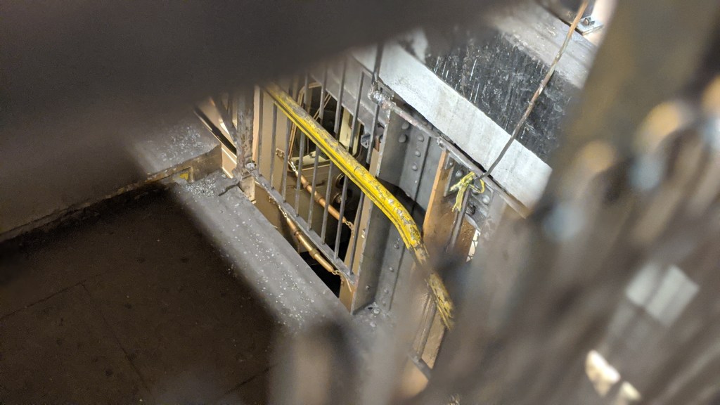 On the southbound side, the local tracks swing out to the right, making space for two trackways to descend, one local and one express. These two, plus the northbound express track would have all passed underneath the existing subway, but since having gone unused, they are now apparently swamped with water. The existing connection to the West End line actually happens further north, with just two tracks. The change was made as construction was happening, and so 36th St station itself had to be moved further north to accommodate the new connection. This is apparent in how the ceiling changes about halfway through the 36th St station, as the north half was meant to be tunnel.