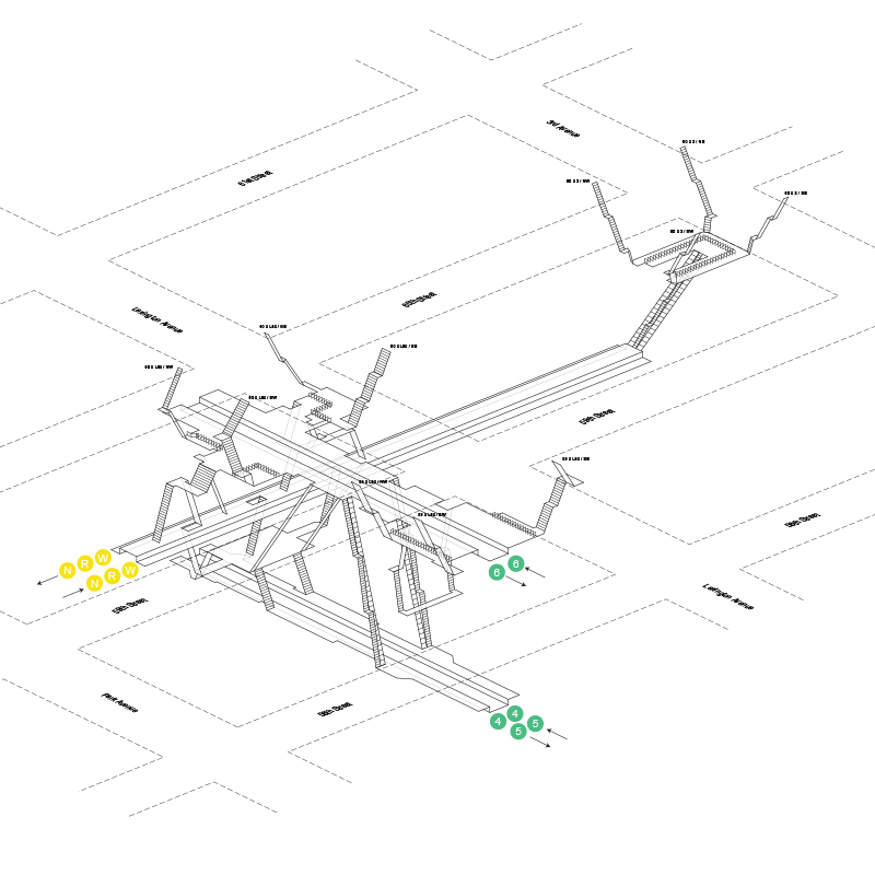 A walkway in this station between the IRT local platforms is supposedly the remnant of the 59th St tunnel that would have connected the BMT tracks to the Queensboro Bridge. This station is interesting as well, beacuase the BMT tracks cross the IRT line at a 90 degree angle below the IRT local tracks, but above the IRT express tracks.