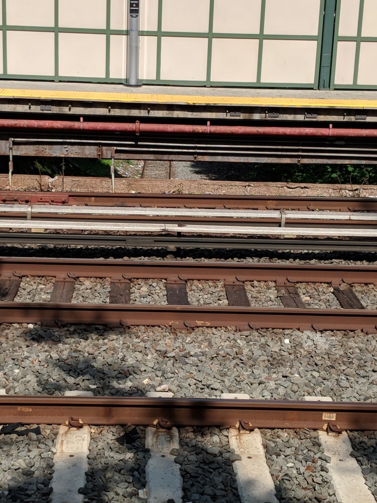 The slight heigh difference between downtown and uptown platforms. Image by Leo Shirky