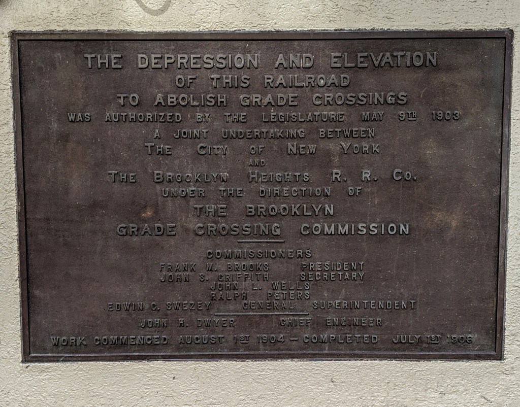 Newkirk Ave station house has a plaque on the eastern side dedicated to the 1903-1908 grade crossing elimination project along this line.