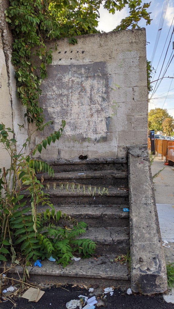 The staircase up to the abandoned Manhattan Beach Branch Station, now blocked off. Image by Leo Shirky