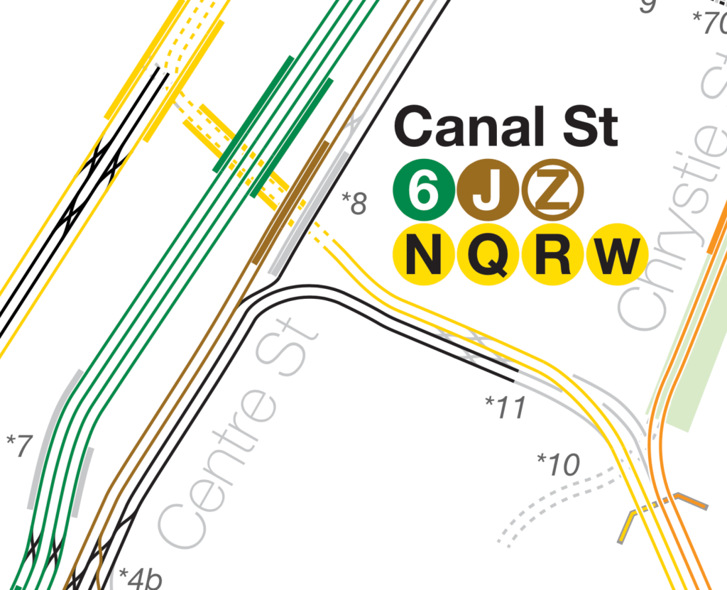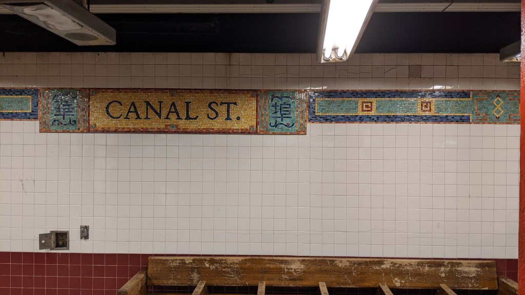 Subway maps thru 1966 showed 2 stations – Canal St. and Broadway. In 1967 with the maps showing the new Chystie St connections the entire complex was called Canal St and any reference to the Broadway name was dropped.
