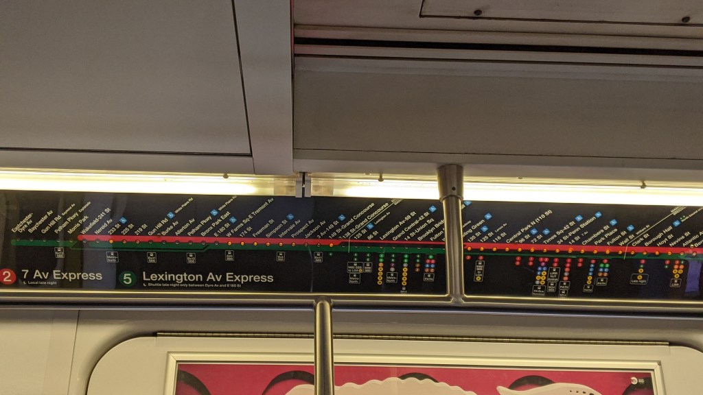 The shared strip maps on (2) and (5) trains. Image by Leo Shirky