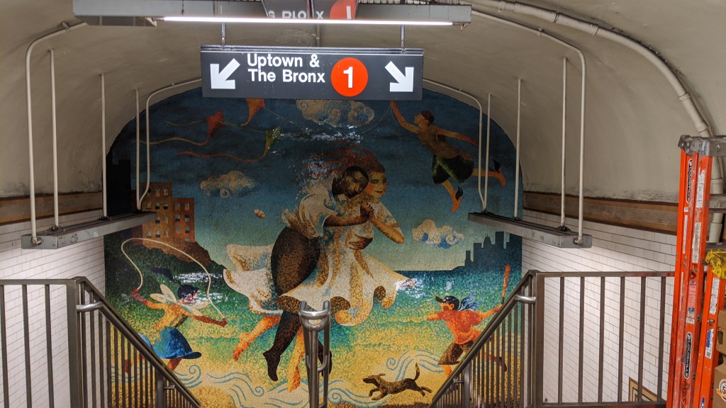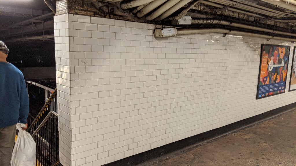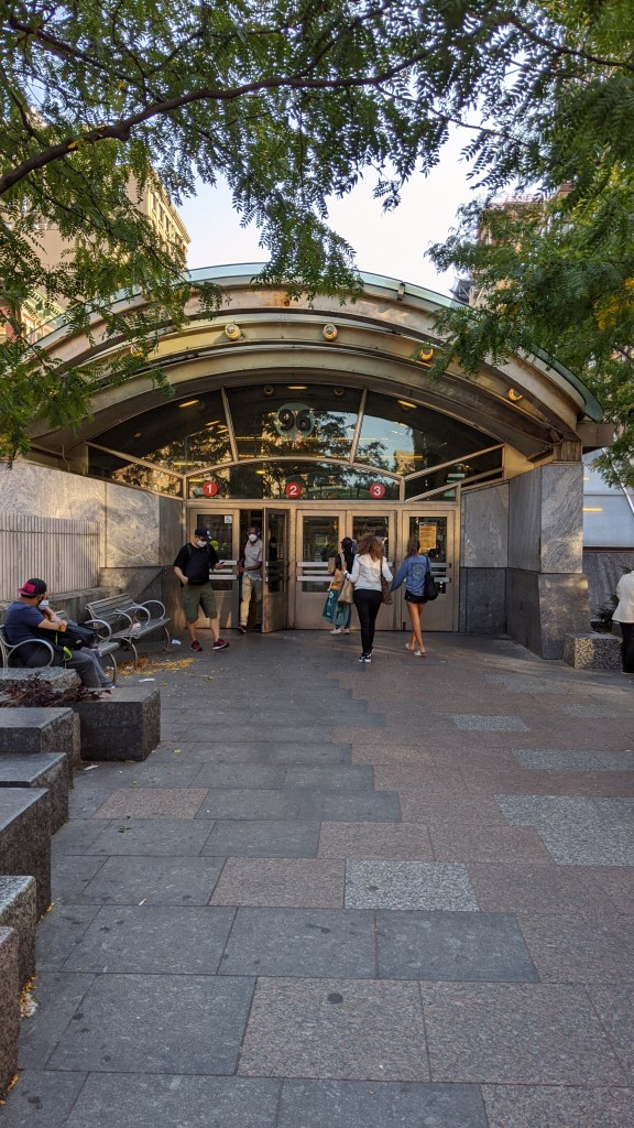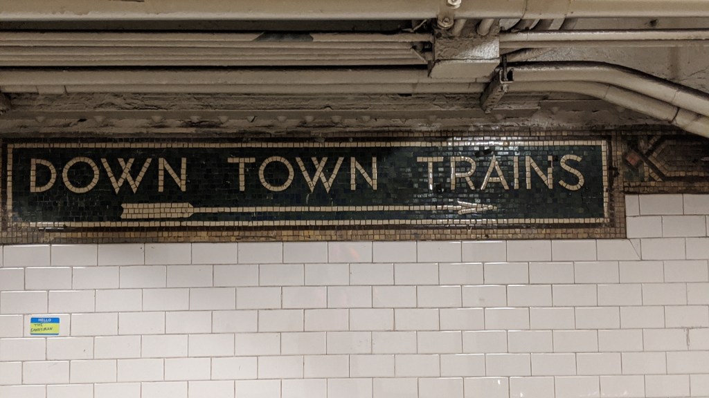 We have now reached the part of the line served by the (1)(2) and (3) trains, although the (2) and (3) are express here. Franklin St is largely unremarkable, but after the death of Aretha Franklin in 2018 guerrilla artist Adrian Wilson put stickers mimicking subway signage reading “Respect” in the station in tribute. Also, the Ghostbusters firehouse is located near this station.