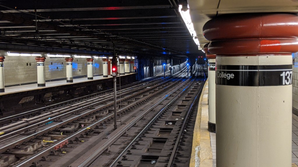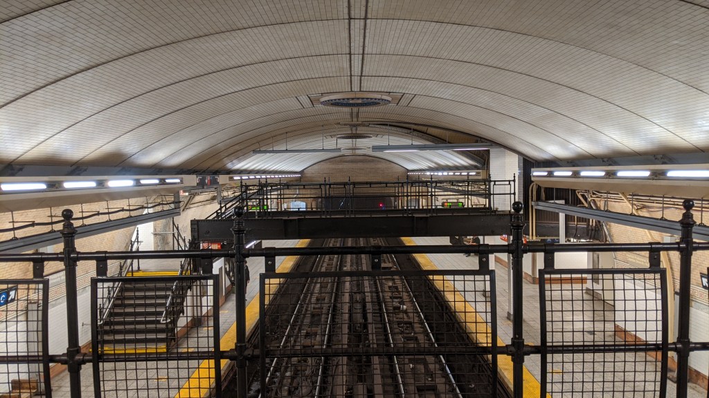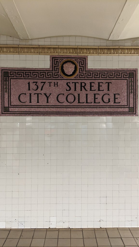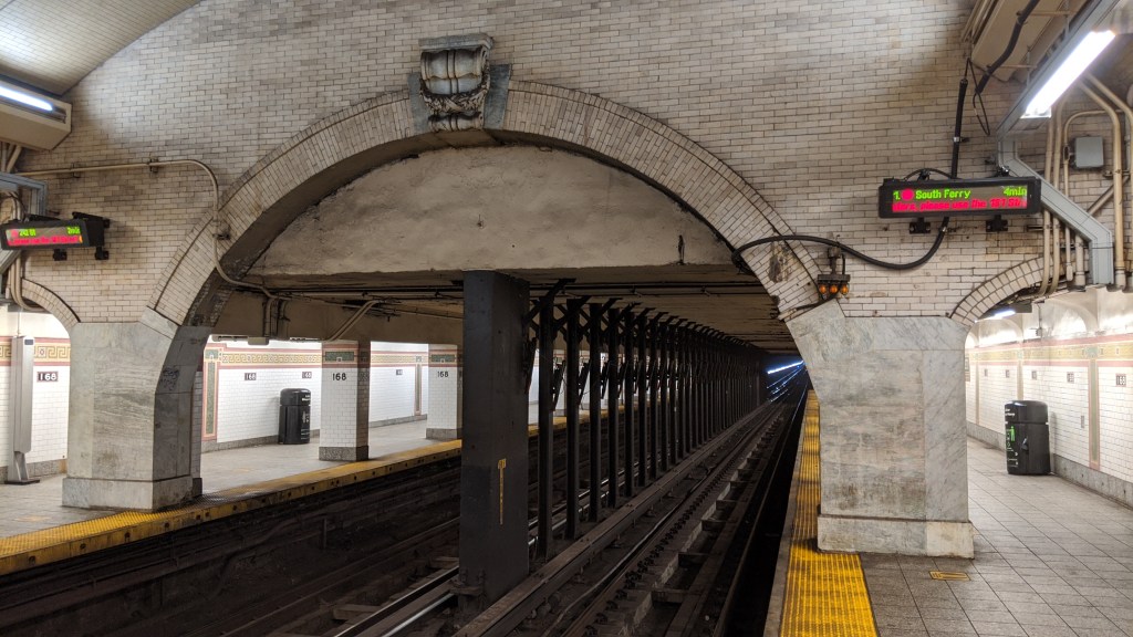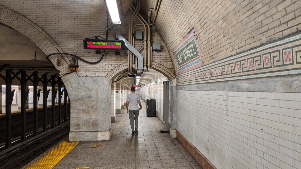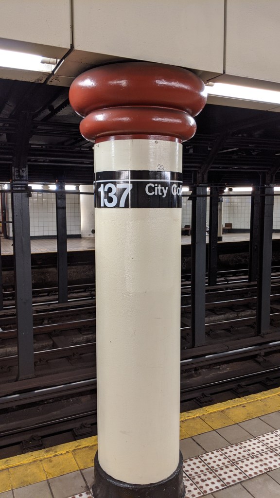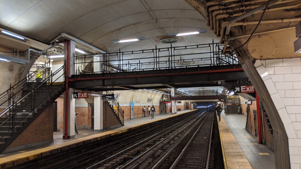 This station is at ground level. If you caught how iffy I sounded at 125th St (West Side branch) when discussing how many stations in Manhattan are above ground, this is part of the reason why. Is this station above ground? Technically yes, but it is under another building, so daylight isn’t entirely visible, and it is below the street level of 7th Ave, where the exit is. To further complicate things, would you consider Marble Hill-225th St part of Manhattan? Politically yes, but physically no. Therefore, there are between four and six above ground stations in Manhattan.