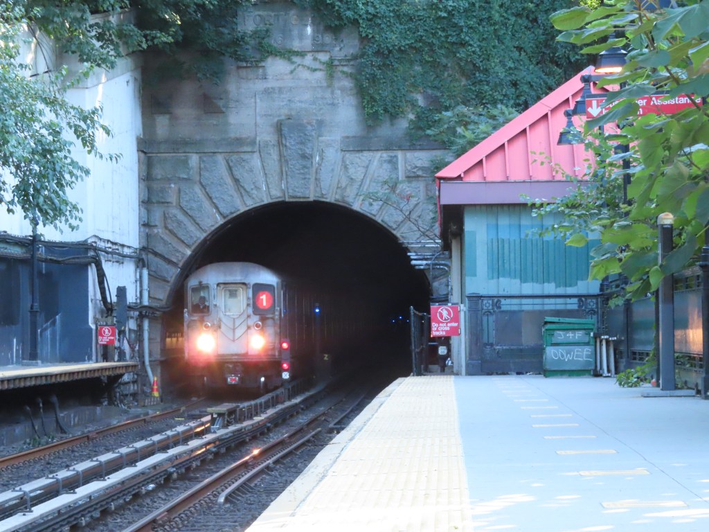 A northbound (1) emerges from the entrance to the Fort George Mine Tunnel at the south end of Dyckman St.