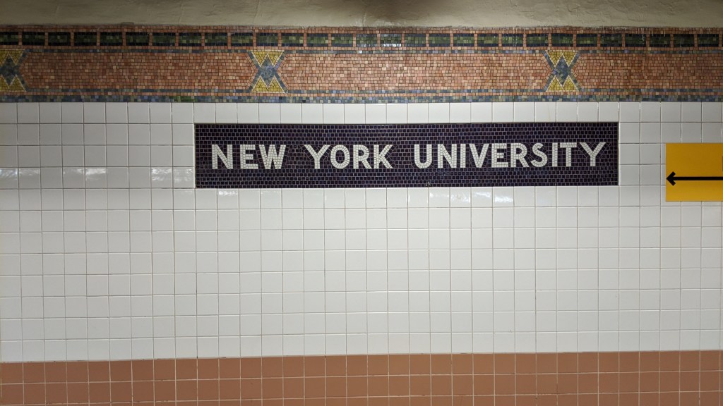Houston St is another largely unremarkable local station, except that the express tracks descend slightly within the station and the local tracks remain slightly above them. By my count, this happens two other times in the system, on the original IRT line at 33rd St (Lexington Ave) and Carroll St on the IND Culver Line, although this happens because the express tracks are descending entirely below the local tracks rather than just slightly changing height. This height difference is caused by the line changing its own elevation, and giving the fast moving express trains a smoother slope to traverse while keeping the platform and therefore the local tracks level. Houston St used to be called North Street, which seems crazy to us now, but it was the northern boundary of New York at the start of the 1800s.