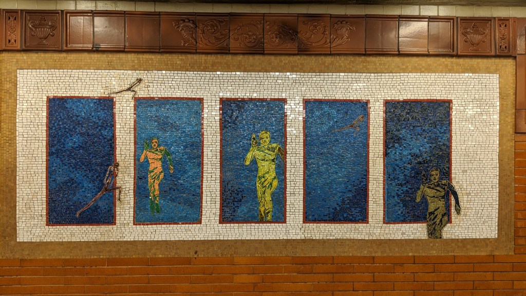 The tiling at 3rd Ave is red and green – for the colors of the two services that stop here, perhaps?
