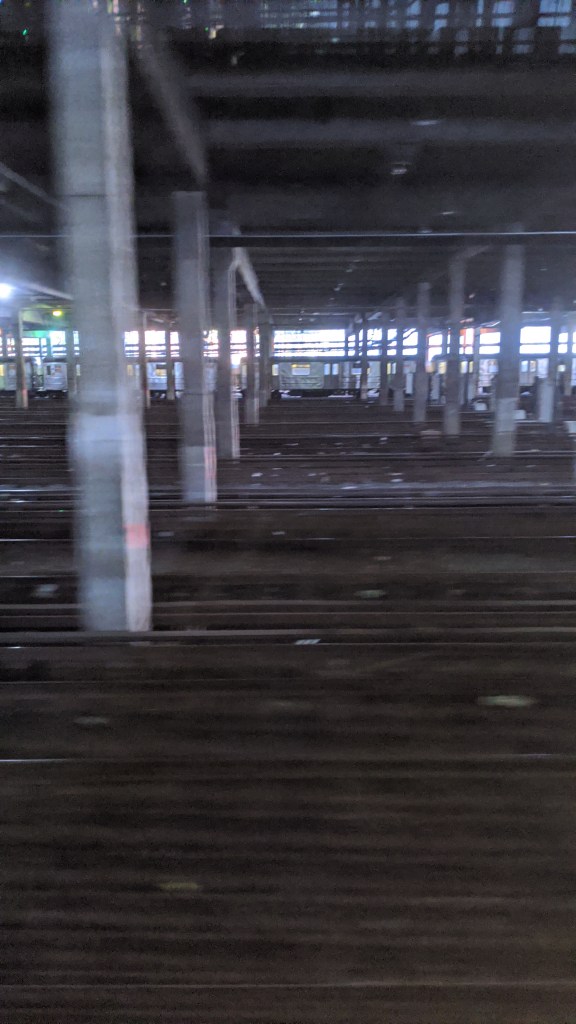 Looking clear across the storage tracks at Lenox Yard, which are visible from the platform. Image by Leo Shirky