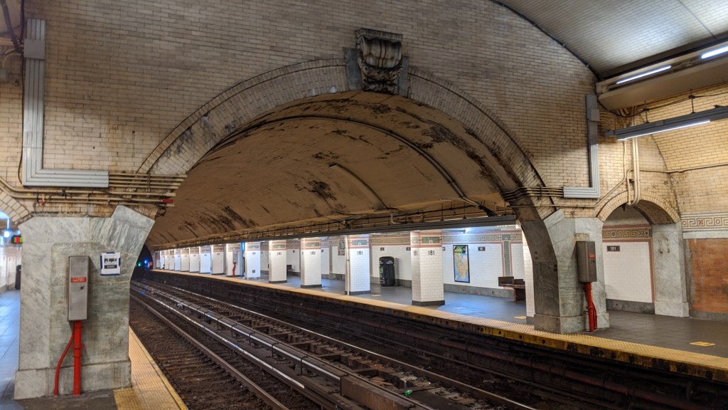 Dyckman St would be 200th St in the grid plan, although the grid in Inwood is offset from the Manhattan grid pretty significantly due to Inwood Hill taking up the western half of the peninsula. There is another fault line here, called the Dyckman Street Fault which is active but not responsible for any major damage. Substation 17, which is adjacent to the station, was one of eight substations built by the IRT to power its system between 1904 and 1905 and is on the National Register of Historic Places.