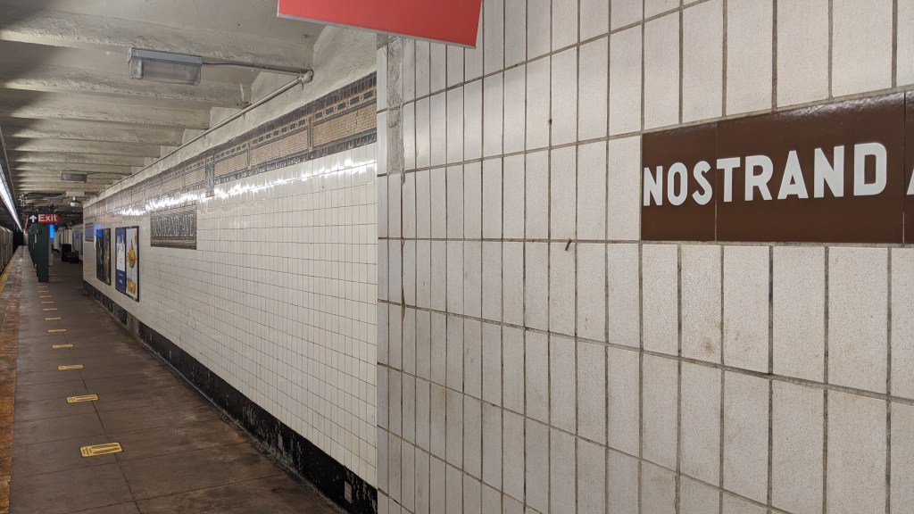 Secondly, the line only has two tracks, and has no provisions to be widened to three or four tracks. This two-track set up goes against the IRT’s typical modus operandi with lines in the outer boroughs, which usually have a middle track that can carry express services into and out of Manhattan during rush hours. The lack of this third track on the Nostrand Ave line means trains either have to make every single stop along the line (which had it been extended to Kings Plaza or Coney Island would have been somewhere in the realm of 13 stations in a row with no express service) or trains would operate in a skip stop pattern (see the BMT Jamaica Line post for more details on how this works) which can be unpopular with riders and logistically difficult to schedule.