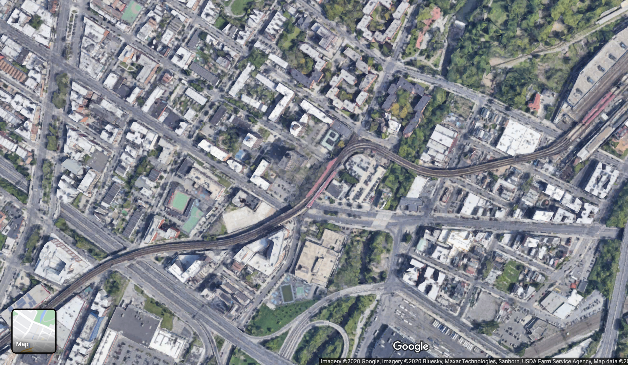 A close up of the West Farms Sq-East Tremont Ave Station. Image via Google Maps